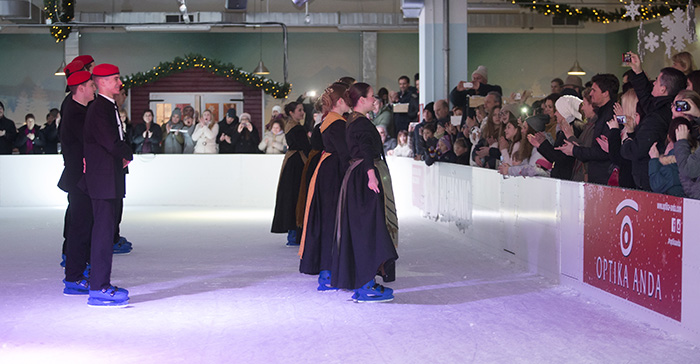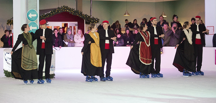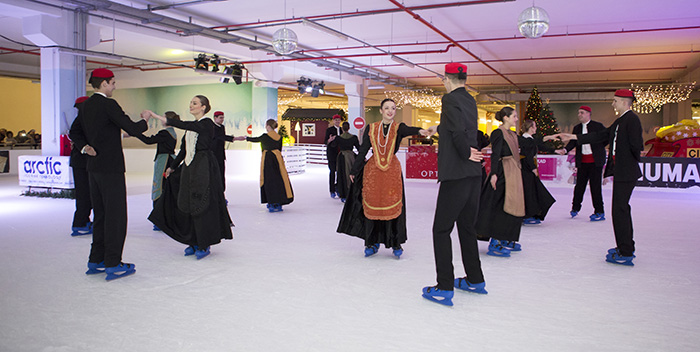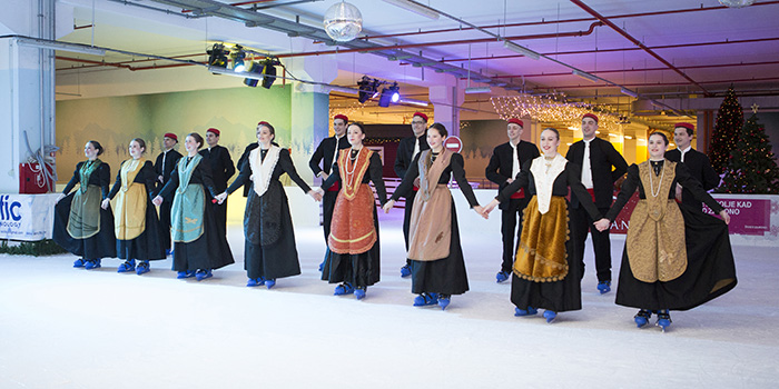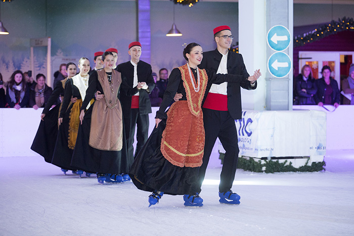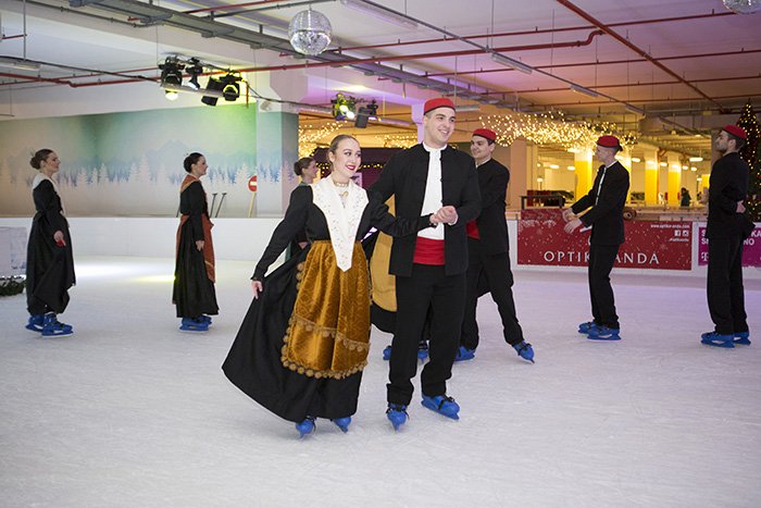 KUD Jedinstvo po prvi put u svojoj povijesti sinoć je nastupilo na klizaljkama na ledu City Ice Parka i izvelo stari splitski ples.