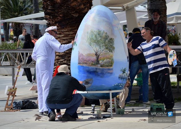 Četvero umjetnika iz zajednice udruga dragovoljaca i veterana Domovinskog rata grada Splita na splitskoj su Rivi jučer su oslikavali veliko uskršnje jaje, koje će tamo biti izloženo narednih 7 dana.